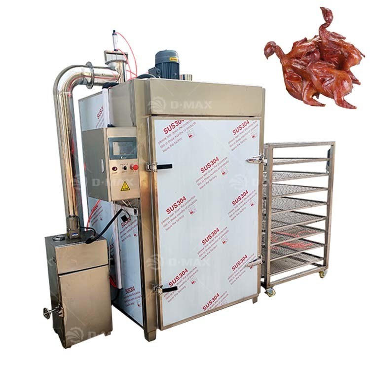 1.Generador de fumaça: tem uma remo para tornar o serradouro mais uniforme. E a tela irá disparar fumaça para que nenhuma poeira vá para o corpo principal.Controlador automático PLC que pode registar 99 modos de processoO sistema de controlo é semiautomático, com ecrã táctil, que requer um operário para controlar as etapas de trabalho.Tubos de aquecimentoNo topo, há um tubo de cobre usado para que a máquina possa aproveitar ao máximo o calor do vapor.Capacidade é de 30-1000 kg/lote 5Tipo de casa de fumo de salsichas: uma porta, um carrinho; uma porta, dois carrinhos; duas portas, dois carrinhos; duas portas, quatro carrinhos, etc.